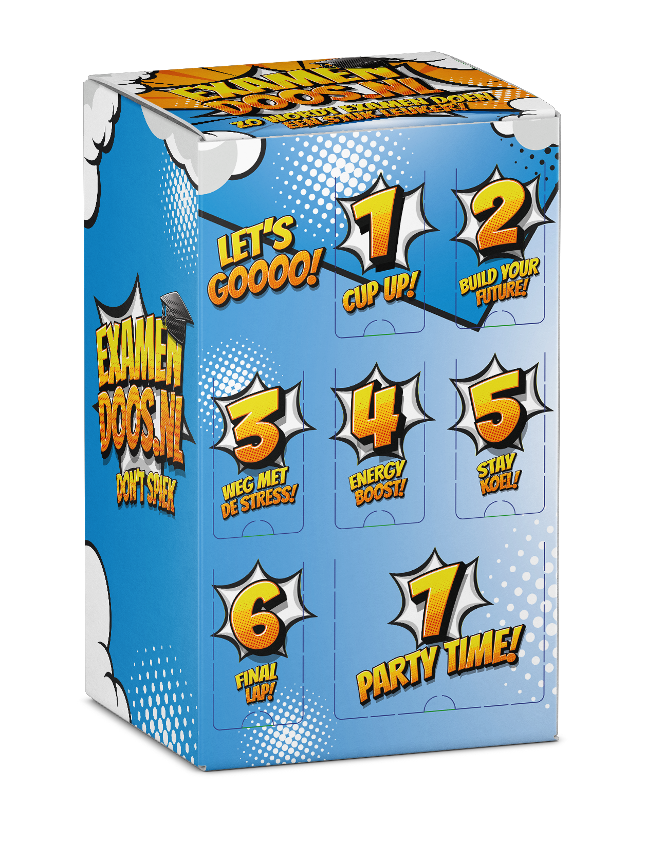 Met de Examendoos geef je iemand die examen doet een boost van motivatie, ontspanning en doorzettingsvermogen.